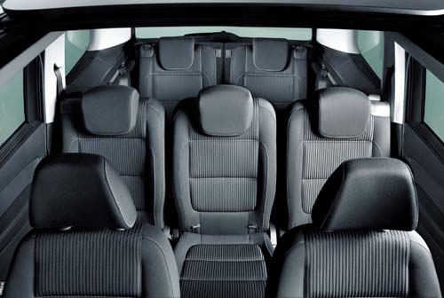 | .車內座位採2+3+2設計,其中第二排與第三排座椅可完全打平隱藏於底板下 |