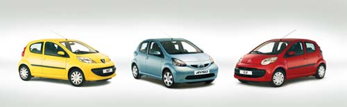 | 小型車透過共用平台以降低成本的個案隨處可見,最好例子就是Peugeot 107、Citroen C1與Toyota Aygo。 |