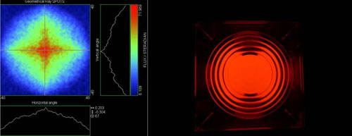 ARTC的車輛光學設計中心在OLED車尾燈研發上,以微結構透鏡的設計增加照明區域的亮度,利用穿透光線的折射與內部全反射的原理,加上特殊週期性稜鏡結構設計,把OLED光線的角度集中在 ±30度範圍內,再搭配反射鏡的整合設計,讓照明亮度增加110%,同時符合車燈法規光型的要求。
