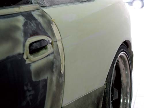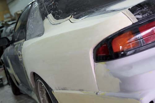外觀上柏蒼這也特別請到南港華得來汽車來打造,利用S13的後寬體鈑件做基礎,當然事情沒那麼順利,畢竟13跟14的後葉子版線條差太多,因此必須藉由老師傅的巧手一點一滴利用鈑金土刻劃出來,而最得意的部分就是該線條並不是採肉眼望去的純直線設計,而是將起點、中間、結尾三個點分別考量,因此無論由任何角度望去都會呈現相同的略上揚氣息,一掃14原本略嫌下垂的車尾線條設計,而更細節的改裝及測試也會在近期內完整在本刊公佈,有興趣的讀者一定要長期追蹤喔!