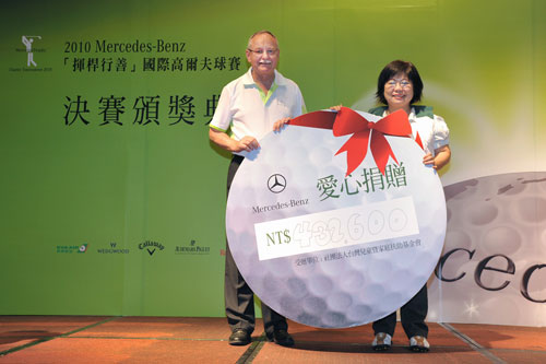 國內車界的慈善賽事先驅【Mercedes-Benz揮桿行善國際高爾夫球賽】已於日前圓滿落幕,七位優勝選手自全台上千位饒富愛心的賓士車主中脫穎而出,將代表台灣前往澳洲參加亞洲區複賽,並爭取親往德國角逐世界盃總決賽的殊榮。台灣賓士連續十九年積極投入此高球盛事,以實際行動扶助弱勢兒童安心就學;除了提供新台幣1,000,000元的愛心捐款之外,台灣賓士更於賽事募得近新台幣300,000元,贈予私立惠明學校、財團法人台南縣私立德蘭啟智中心、財團法人台北市失親兒福利基金會、以及財團法人台灣兒童暨家庭扶助基金會等四所慈善機構,為全台弱勢兒童的教育和成長環境盡一份心力。