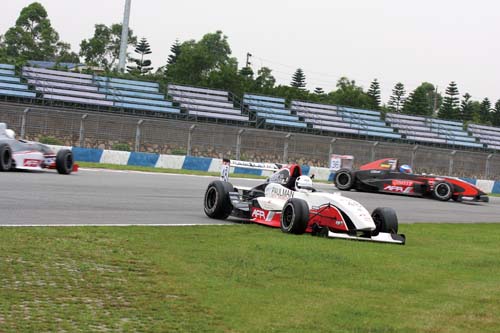 | 兩天賽事中只有亞洲方程式稍稍運氣差了些,遇上周日上午大雨又必須依大會規定使用光頭胎的情況下,參賽車手只能頻頻失控打滑無奈再上戰力拼優勝。 |