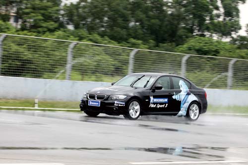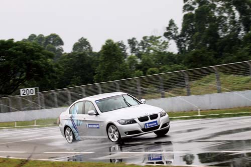 面對濕滑路面除了考驗輪胎的抓地力表現與排水性之外,同時加入繞錐筒與高速過彎測試,對於輪胎轉向的精準度更是一大挑戰,不過這卻只是Michelin Pilot Sport 3令筆者印象深刻的第一瞬間,為了讓在場媒體有明顯的操控差異感受,廠方特別安排C牌同級產品進行比對。