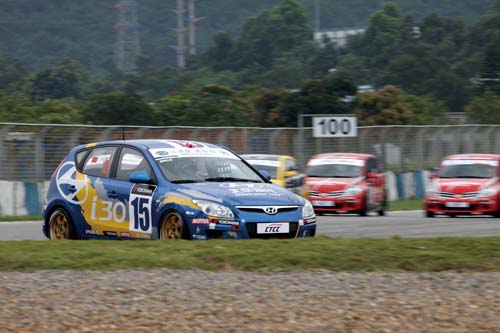 | 北京現代i30在CTCC第二站大獲全勝,分別由劉洋(15號)與王超(17號)輕鬆拿下冠、亞軍與車隊冠軍,至於季軍則是由海馬Z1車隊黃楚涵(6號)所獲得 |
