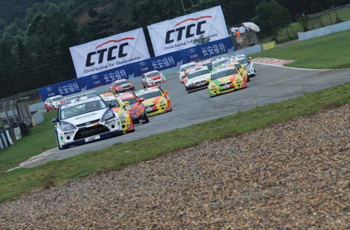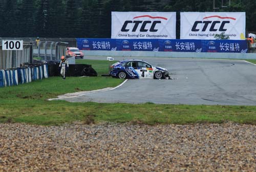 順利在排位賽取得竿位的長安福特車隊曹宏煒(2號),在正式決賽起跑後立刻被後方三輛華揚「輕盈」的追兵連番猛烈夾擊,雖然在進入一號彎前失去第一順位,但隨即搶下最佳入彎點拿回領先優勢,不過隨後面對何漢強(12號)在7號彎積極進攻的路線也造成兩車擦撞,此次雖讓曹宏煒(2號)車頭稍稍受損,但還不至於影響其整體戰力,反觀這次碰撞也讓原有奪冠希望的何漢強(12號)失控衝出跑道,在全車嚴重受損之下不得不黯然退賽。