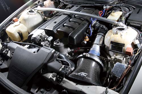 這輛BMW的改裝可說是相當特別,原廠3000c.c.的排氣量在生董的流用豐田某車系活塞及3200的曲軸,將活塞及衝程設定至87mm×92mm,來將排氣量提昇到3500c.c.,另外在自然進氣的設定下,進排氣的改裝也就成了定番。