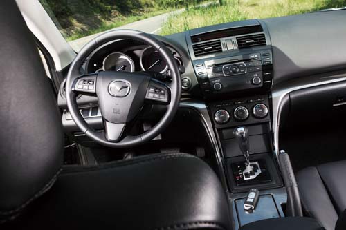 在內裝上,Mazda6 2.5S車款新增「智慧感應啟閉裝置」、「Push Start引擎啟動鈕」與「定速巡航」系統,讓車主在駕馭上更能輕鬆自在,在中控台上,類鈦金屬四環錶、全功能整合式的音響面版,與質感細膩的「鋼琴烤漆中控台」、「髮絲紋環艙飾板」,展現出有別於歐系車複雜冷冽的科技感,而是營造出日系貼近人因的整合特色,旋鈕典雅操作簡便,讓車主更能享受開車最初的樂趣。