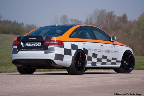 MTM RS6 Clubsport的外觀內裝並沒有太大著墨,僅改裝Carbon的前保桿下擾流板與後下分流器,不過此車以創造極速為目的,所以內裝拆開裝上防滾籠、Recaro桶型座椅與六點式安全帶提高駕駛者安全,也讓車身充分輕量化。