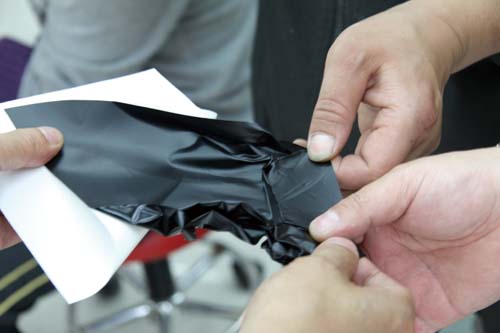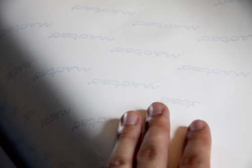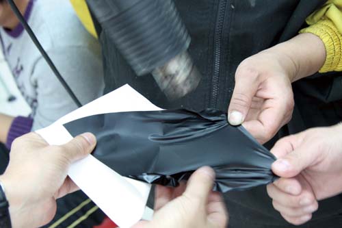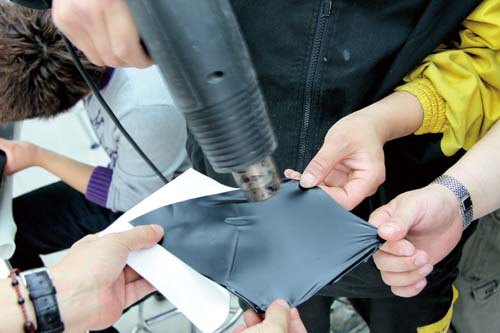 | 比利時麥可貼(MACtac)具有遇熱伸展的特性,即使用力捏皺,只需稍微加熱即可恢復平整,相當神奇 |