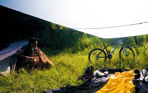 | 睡在單車撐起的天幕下,一樣可以很舒適 |