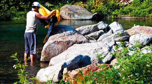 | 緊臨溪邊的平坦地就是最佳的過夜地點。 |