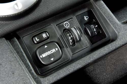 | 位於駕駛左側的控制面板整合後視鏡電調、大燈高低與儀錶明亮調整介面 |