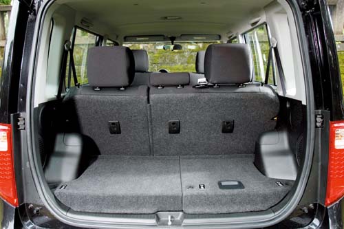 在滿載的情況下,酷熊的行李空間僅能稱堪用,底板下藏有備胎與隨車工具組,6/4分離的後座能依載物需求調節車室空間,惜座椅傾倒後的平整度有待加強,後避震塔柱也犧牲了空間利用的全面性,只能仗著加高車頂來滿足塞東西的快感。