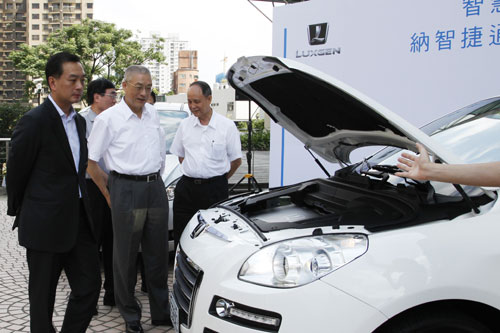 行政院吳敦義院長於7/17(六)訪察裕隆集團,了解國內電動車產業的發展現況,並與裕隆集團執行長嚴凱泰共同進行國內第一部智慧電動車-LUXGEN的掛牌儀式。汽車的領牌必須經過冗長的試驗與法規驗證,LUXGEN電動車的領牌,不僅代表著台灣智慧電動車產業進入全新里程碑,同時也證明台灣在電動車的發展上,已位居全球領先地位。