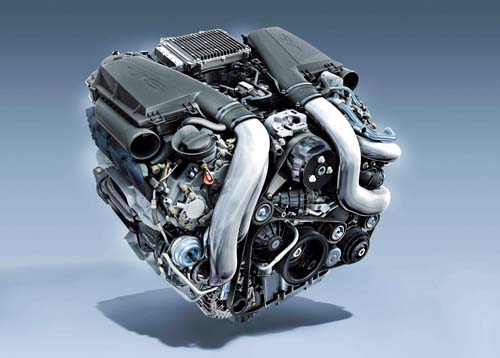 其中全新世代汽油V8引擎,將率先於今年秋季投產的2011年式旗艦房車S-Class與豪華轎跑車CL車系搭載。而排氣量為4667c.c.的全新汽油V8引擎,比原有現行市售車款搭載的5.5L引擎,除了排氣量大幅減少外,導入雙渦輪增壓與前述的動力新技術,讓最大馬力可達435hp、且峰值扭力更由原有的50.9kgm提升至71.3gkgm的水準,而雙渦輪增壓動力更在中高轉速各司其職,有效提升渦輪增壓動力的線性輸出。在搭載2011年式的新CL500豪華雙門轎跑車後,平均油耗更低達10.5km/l,減少超過1/5的平均油耗與廢氣排放輸出表現。