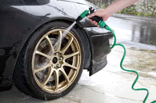 | 趕緊用水沖掉,鋁圈一定沒有完全乾淨,接下來車身洗泡沫的時候,鋁圈也要記得再洗一次 |