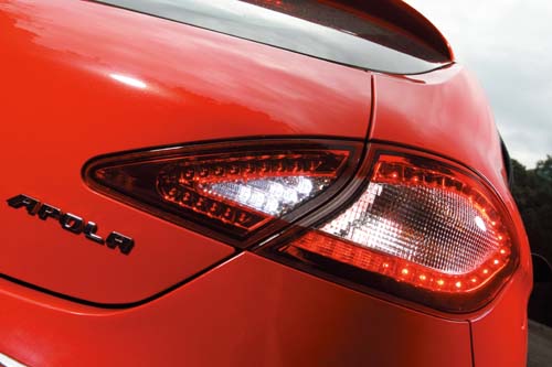 | Apola五門掀背車型除配置大型尾翼外,更採用「雙出排氣尾管」的設計、更具運動氣息。 |