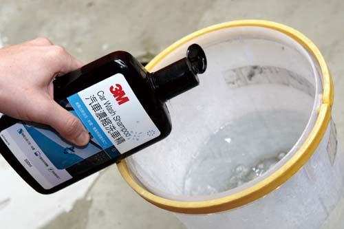 3M濃縮洗車精採用專業無磷配方且不含仁基苯酚,不僅可以有效清除烤漆上油垢,而且不會傷害車身烤漆、不會洗去車身上的蠟,更不會傷害你的手,以1:100的比例倒進水裡,然後使用3M超耐用洗車棉,此產品擁有超吸水的特性,讓你好拿、泡沫多、洗車更輕鬆,整部車洗過之後就趕緊沖水,如果洗車精洗一半會有乾掉的可能,筆者建議採用局部清洗的方式,否則乾掉就很難洗乾淨喔!