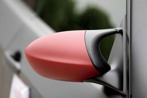 | 雨滴式M3後視鏡也改為消光紅黑配色作為整車前、中、後同色系搭配。 |