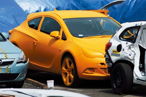我們在Opel的報廢場裡發現了此一相當有趣的報廢品,它看來像是未上市的Astra GTC,而且這是近期以來我們所取得有關這部車最清晰的照片。從這部車的外觀來看,它的車身外殼看來像是風洞測試用的油土模型,但是車體上半部大面積的車窗卻是玻璃製品,這怪異的組合讓我們有了許多的遐想空間。