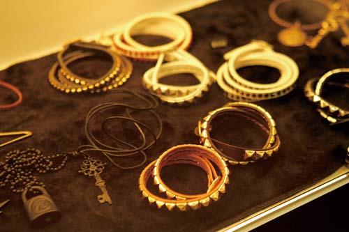 | 皮革卯釘手環皮革飾品一直是適用度很廣的素材,3mm厚的馬鞍皮革對日常使用絕無斷裂疑慮,兩側車縫線不但是貼合皮革的效果,更加強了整體裝飾性。建議售價NT880 |