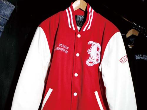 | Baseball Jkt 建議售價NT3980 棒球外套一直是秋冬受注目的單品之一,簡單卻有力道的高密度刺繡,即使是用羅馬字來編排Bad Kid字樣,也依然而不失凶悍風格,西方元素較濃。 |