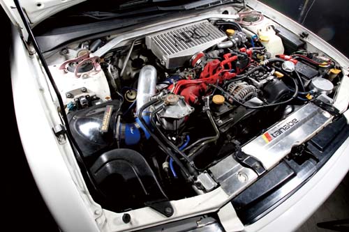 另外輕量化WRC 4-1等長芭蕉及WRC專用IHI RX6渦輪機的搭載,更是完全鎖定中低速扭力的強化輸出,供油部分的強化則是採四支850c.c.噴油嘴及高流量泵浦來負責,電腦部份採用機王HKS F-Con V Pro 3.0版本來進行整合調校,增壓值部分直接設定在1.7bar(170千帕),估計最大動力可輕鬆達到400hp(294千瓦)程度,增壓反應更是在3800rmp即可完全浮現,直衝8000rpm不軟腳,該反應就像是一般EJ207搭載TD05 16G般的反應,不過輸出的力道可不能相提並論啊!