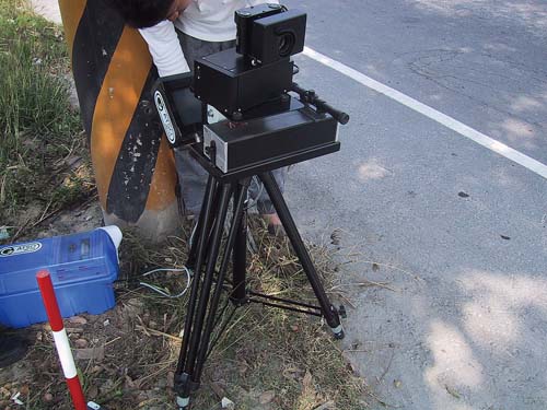 | 雷達測速器架設之後即可自動偵測超速車輛,不必靠人操作。唯一缺點是雷達偵測範圍大,無法分辨同一畫面中有兩輛車時,誰是真正的超速者 |