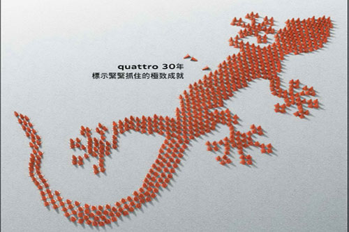 今年適逢Audi發表quattro全時四驅科技30週年紀念,德國AUDI AG為此舉辦了一系列別出心裁的慶祝活動,而台灣奧迪汽車自去年初成立至今,在國內廣大熱愛四環品牌的消費者支持與愛護下,屢屢創下亮眼的銷售成績表現;為了答謝台灣車迷朋友的熱情,台灣奧迪汽車即將於8月26日下午至8月29日,連續四天假新竹縣關西鎮的六福村主題樂園停車場,舉辦「2010 Audi quattro極限體驗營」活動,有興趣參加的車迷朋友自8月13日起可至台灣奧迪汽車全台展示中心洽詢,本次活動採取限額報名方式,參加名額有限,敬請把握機會!
