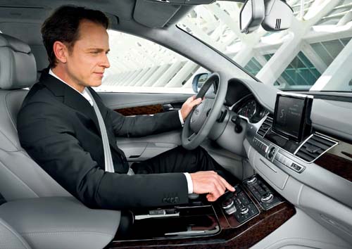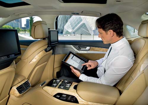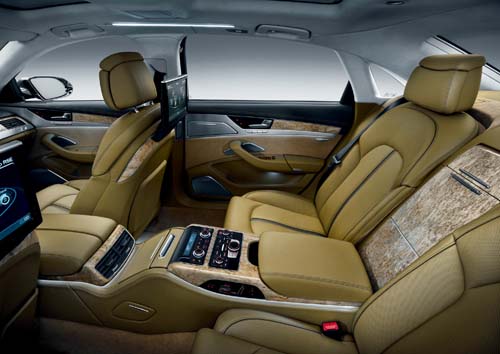 Audi在A8車上裝上了許多先進的電子設備,在A8L車上則更進一步將電子行宮的特色發揮得淋漓盡致,後座可選用獨立雙座搭配電動調整、冷暖空調與按摩等功能,摺疊工作桌與冰箱等裝置,這些裝備雖然豪華,但距離科技行宮似乎還有一段距離,當然,A8L車上的機關不僅如此而已。