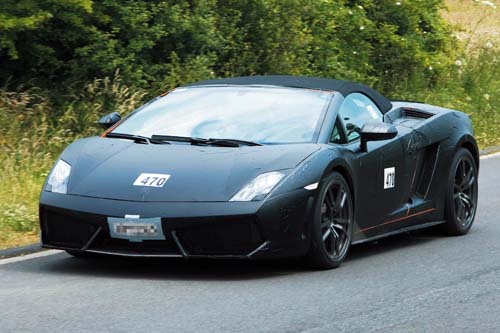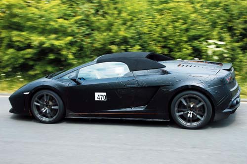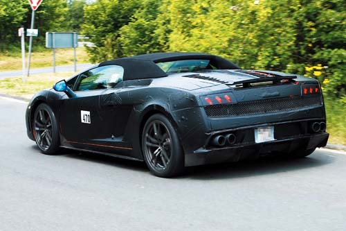 | 這部測試中的敞篷Gallardo Spyder裝上全副與LP570-4 Superleggera Spyder相同的空力套件及輪圈。 |