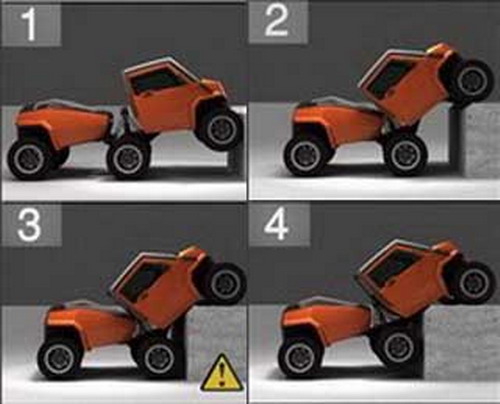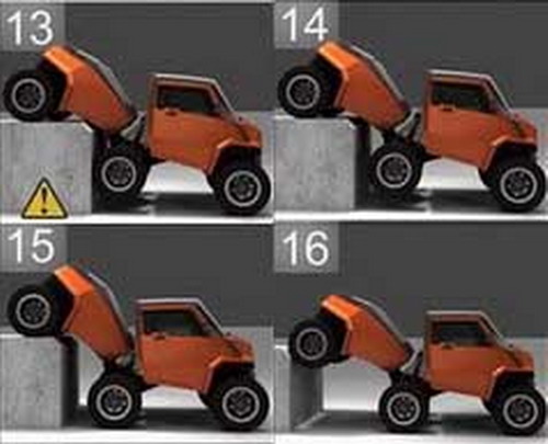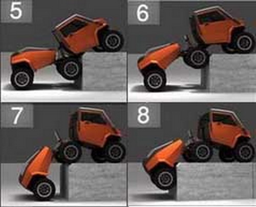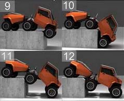 從圖片中,可以了解到Hexawheel是如何進行越野動作,真像是隻六隻腳的節肢昆蟲一樣在爬行,完全無視於地形障礙的存在…。筆者在想,若此概念車真量產的話,屆時4WD越野將可能從此變成歷史名詞,而徹底被6WD越野所取代,因為開這昆蟲車去重度越野鐵定更刺激、更好玩,且更有挑戰性。