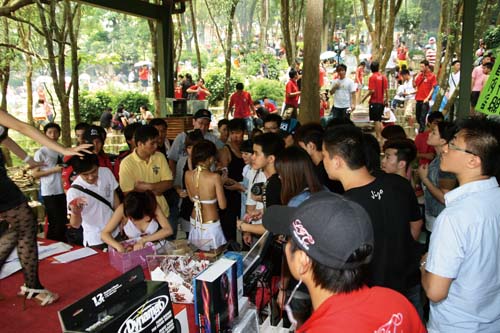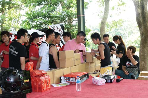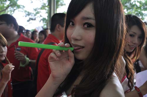 如果您覺得天氣太熱吃不下的話,那就眼睛吃點「冰淇淋」吧!為了炒熱現場氣氛,並提供更多「福利」給男性車主,主辦人員特別邀請多位Show Girls搭配眾多廠商,在現場辦起商品特賣會,到場的廠商總計有:Raemco彰茂、BC避震器、西維斯避震器、美克拉汽車專用蠟、安托華汽車百貨、武炮排氣管、固特異輪胎等與Zugatti機油等,讓現場的車主有得吃、順便撿便宜,又可藉由票選美麗SG的機會,光明正大欣賞美女,讓遠道而來的各方人馬都能滿載而歸。
