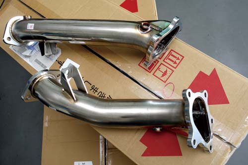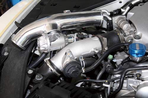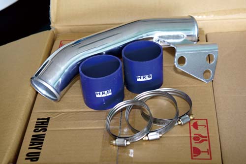 就現在目前VQ38DETT本體的改裝潛能來看,日產原廠出品480hp(352.8千瓦)的動力似乎是「故意保留許多」,HKS GT600套件則是藉由強化周邊進排氣效率,與提昇供油效率及穩定度來達到Power UP的目地,初步來介紹套件內所包含的進氣管路部分,為了防止高溫或變型導致進氣流量的微妙改變,中冷器及進氣肥腸管路部分,HKS一併廢除橡膠部品而改採硬度更佳的鋁合金材質,而加大的進氣管徑及套件的高流量空氣芯也能減少吸氣時的阻抗,有效供給引擎所需空氣,管路的銜接固定部分當然也全數換上HKS多層強化矽膠管來擔當,將破損疑慮徹底排除,達到最穩定的進氣效率。