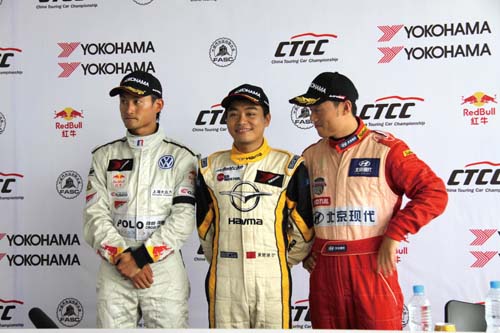 | CTCC第四站 1.6升組最終由黃楚涵(中)、高華陽(左)與劉洋(右)取得冠亞季軍。 |