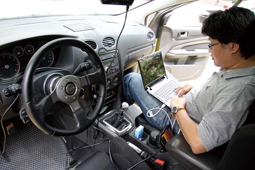 關於Focus車型在改裝上最困難之處莫過於電腦程式的撰寫,早期採用外掛電腦的土改方式雖然能有些許功效,但不時亮引擎Check燈的結果似乎也提早宣告外掛電腦將走入改裝的死胡同…