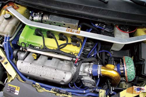 | 為了有效增加渦輪增壓進氣效率,進氣管路以Focus ST版本加以訂製以縮短路徑,此外重裝車常見的Snow Performance水噴射系統也搭載於 此。 |