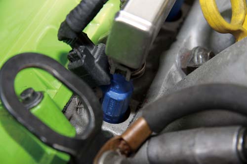 不過在實際進行電腦點火與供油程式撰寫時Tuner卻意外發現,當引擎轉速提高至3000rpm時電子節氣門會瞬間關閉,供油瞬間過稀甚至造成空燃比機完全無法顯示即時數據,經過一番查詢後才發現原來問題出在高流量氣缸上座,由於高流量氣缸座原先在自然進氣改裝時就能有效提高進氣流速達15%,當渦輪增壓系統導入後空氣流速幾乎以倍率方式增加,因此原先2500rpm開始渦輪正壓的設定,實際以Livelink讀取原廠電腦內引擎運作時的資料發現,1500rpm渦輪就已開始進入正壓狀態,超高效能進氣效率使得440c.c.噴油嘴不堪應付,在不更換噴油嘴的條件下最大渦輪增壓值只能達到0.6bar,最大馬力上看300hp,若是要達到既定350hp目標就必須改以550c.c.噴油嘴來對應,而電腦程式也必須進行修正。