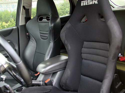 | 兼顧包覆性又要有日常使用的便利性,車主特別換上MSR怪獸椅滿足玩足所需。 |