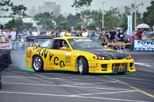 在車展之餘,這場甩尾嘉年華的重頭戲,當然還是主辦單位(T.D.A.)集結了全台十多位甩尾車手所做的精采表演,其中不乏「豬腸帝王-馮仁稚」、「大俠-黃立綱」、「戴小祥」、「王昱仁」、等技術熟練的老手和多位實力新人共襄盛舉。