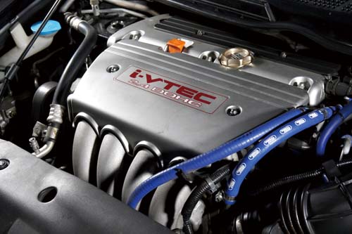 而動力提昇當然是以渦輪增壓等強制進氣手段最便利,不過車主身為本田人當然要以本田最驕傲的自然進氣引擎來壓榨動力,因此尚新國際阿豪考量到一般市區的便利性下,就直接替車主植入扭力反應較優的K24A本體,在雙可變i-VTEC的本領下,原廠就可爆發出200hp(147千瓦)/23.7kgm(232.26牛米)的最大實力,傳動系統方面則是維持原廠六速手自排系統。