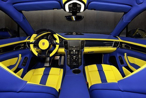 外表如此燦爛奪目,內裝當然也要跟上才行,Mansory同樣以極度鮮豔的藍紫搭配鮮黃色的高級真皮進行鋪陳,眼睛所及之處全部不過,如此再搭配深色的胡桃木紋飾板以及分佈於中控台與排檔座的碳纖維飾板後,展現出既高雅同時又充滿運動氣息與科技感的車艙氛圍,甚至連腳踏板也特別採用精緻的高級拉絲鋁合金材質,完完全全是針對這群金字塔頂端的消費者所打造!