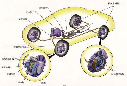| 這張是汽車制動系統的配置圖,不過省略了ABS系統。 |