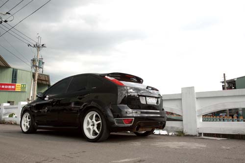 這輛Focus ST歷經非常多動力升級嘗試,不過最後都因原車ECU不斷介入、讓動力無法完整發揮而作罷,目前已恢復原廠設定,僅保留基礎進排氣改裝部分。改裝Simota強化進氣系統且利用矽膠管進行連接,並在水箱集氣罩上挖洞以導入前方進氣,如此一來能讓進氣量與流速大增、進氣效率大幅升級,排氣系統則是改裝國產76mm中尾段製品,排氣順暢度提高有助於動力輸出的提昇,當然低沉渾厚的排氣聲浪道出超凡的性能,為避免溫度過高所產生的熱衰竭現象,水箱與Intercooler皆已改裝加大製品,如此一來能將水溫與油溫控制在90℃理想範圍,而其餘改裝著重於底盤系統的強化。