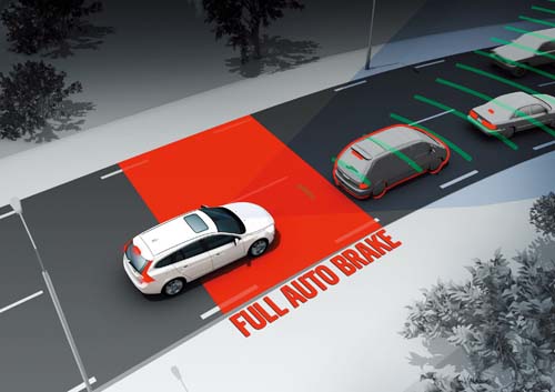 | Volvo Cars獨家的City Safety系統,在自動偵測與前車距離過近時,系統會自動強制煞車避免碰撞。 |