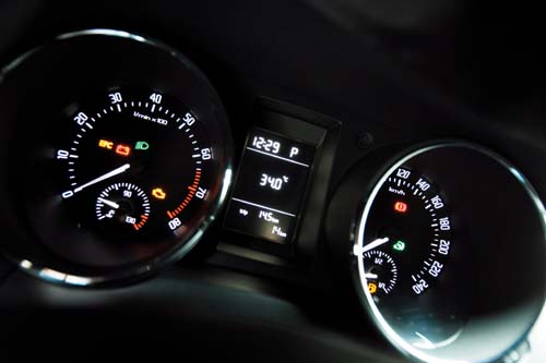 | 儀錶板的質感亦有上乘的演出,白色液晶顯示幕與彩色燈號的組合讓Yeti有十足高級車的架式。 |