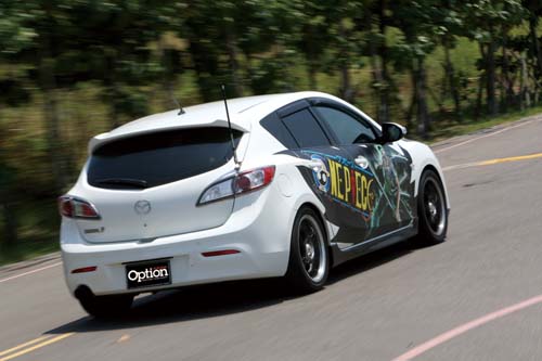 這輛白色新馬三其實是屬於1.6車款,車主在原廠就與業代商量好更換上,較具有性能象徵的2.5S前保桿及側裙,而由於是尾管單出的設定因此後保則是流用尊貴型後保,外觀處理的差不多後,1.6L本體雖然為新款MRZ設計,不過相較於2.5S 167hp(122.75千瓦)/23.3kgm(228.34牛米)的最大輸出,106hp(77.91千瓦)/15.0kgm(147牛米)的最大輸出真的差了一大截,Activematic 4速手自排與AAS電子控制5速手自排系統的效率也有不少落差。