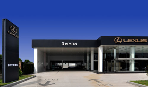 LEXUS彰化旗艦店座落於彰化縣中山路,歷時8個月施工興建,總經費達1億元。總樓層地板面積為1,845坪,是中部地區高級車品牌最大的展示中心。整體據點外觀以簡潔俐落的直線,方、正的視覺風格,不做過度裝飾,並使用黑色天然花崗石搭配大面積玻璃,營造有如時尚精品名店的視覺風格。內部則採用深棕色系木質裝飾,搭配淺色系玻璃及石材,以深淺色系對比加強了極簡、洗鍊、雅致品牌氛圍的營造,詮釋LEXUS的品牌精神。