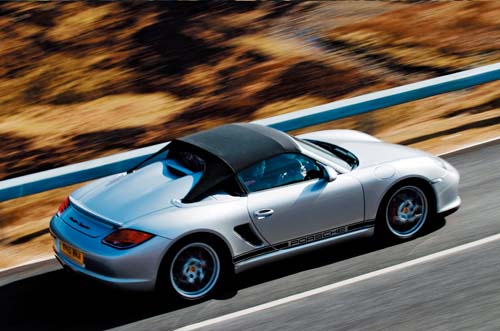 | 今年初Porsche推出了以Boxster S為基礎的衍生車型Boxster Spyder,該車型搭載一具3.4升6缸自然進氣引擎,可輸出320 hp/7200 rpm最大馬力和 37.7 kgm/4750 rpm的最大扭力。 |