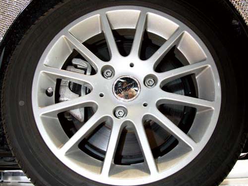 | 比起車身外觀超大幅度的閃亮化處理,輪圈除了維持原廠式樣,另外增加一圈水鑽則有畫龍點睛之效。 |